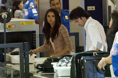 The "Vampire Diaries" co-stars smiled for photographers as they prepared to depart from LAX Airport.